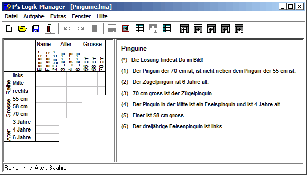 Der Logik-Manager von Michael Pousen löst keine Logicals, aber unterstützt dabei! Das Programm ergänzt, aus Eingaben resultierende Schlussfolgerungen automatisch. So können wir lernen, was man sonst leicht mal übersieht!