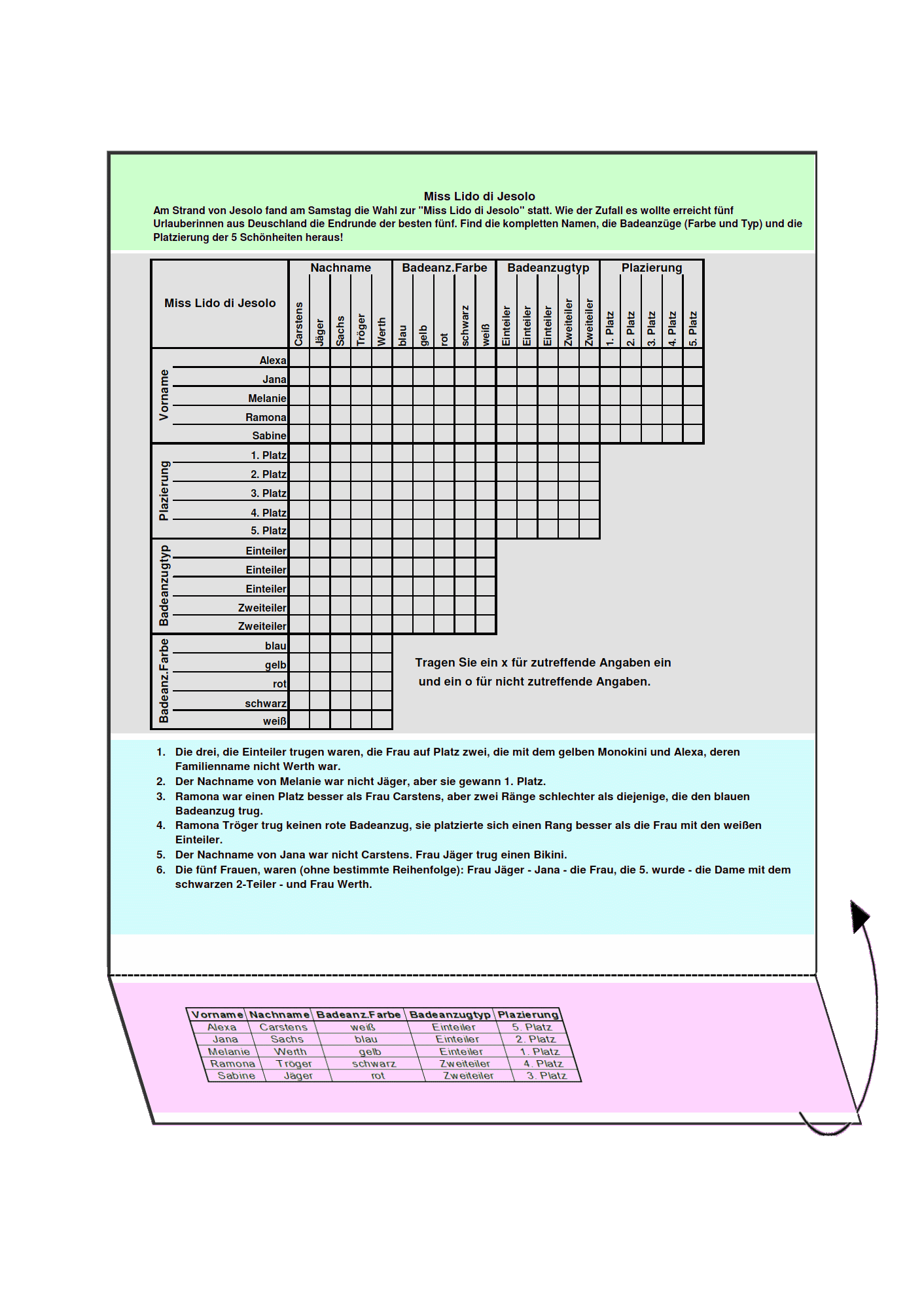 | Im Einleitungstext können wichtige Hinweise versteckt sein! | |